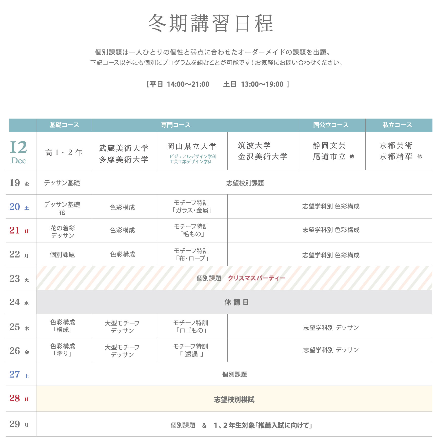 2年生で美大受験を考えている方はこの冬からのスタートをおすすめします。なるべくお早めの対策をお願いいたします。