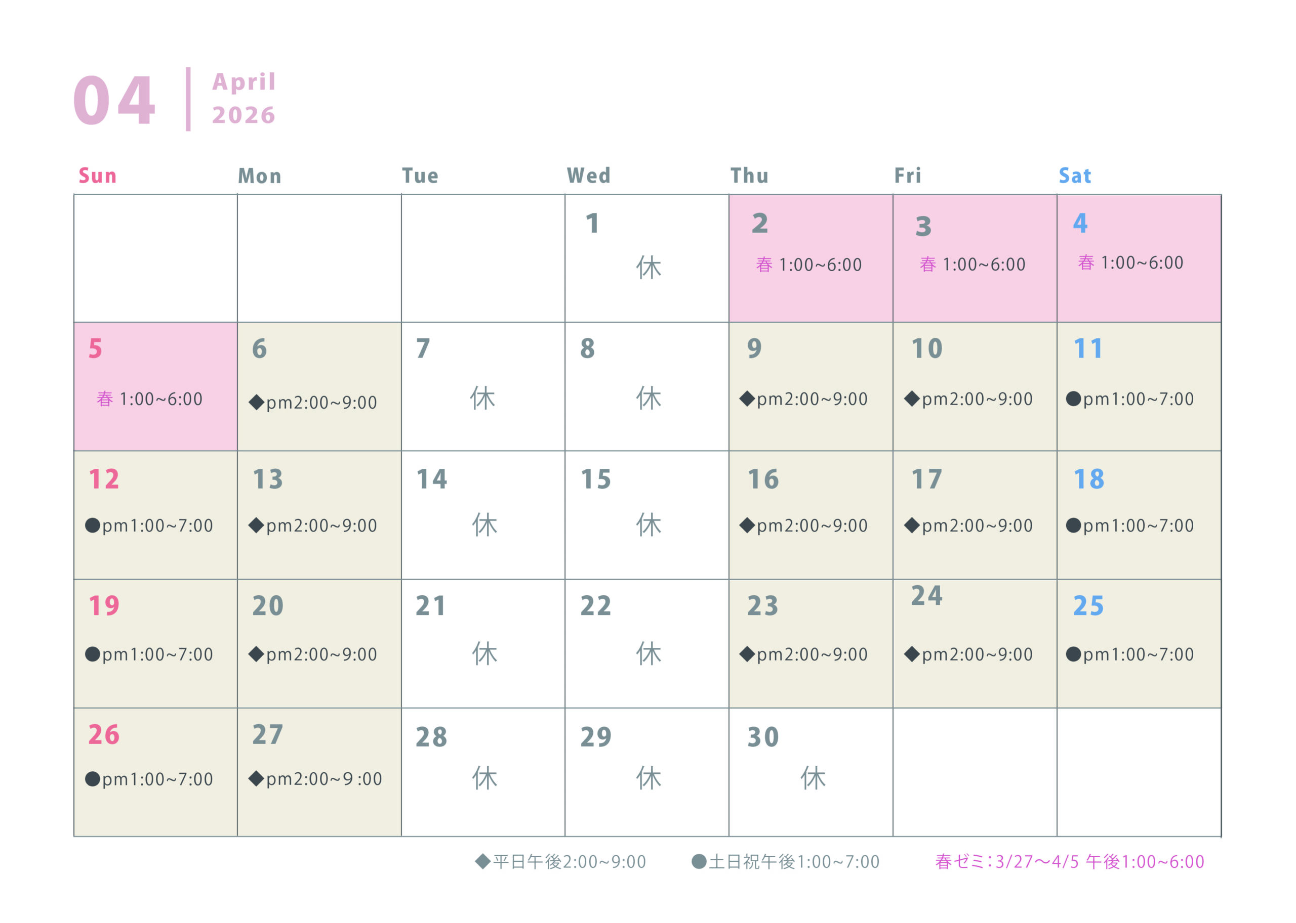 春ゼミ期間 13〜17時