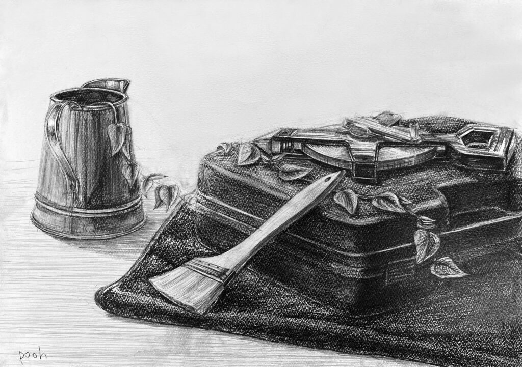京都でしか得られない「工芸」の英知を新たな建築やデザインに活かしていく、そんなマインドを持った専門学科。京都の伝統工芸が好きで、このコースを希望する人が多いのも特徴です。実技試験は、与えられた文章からその状況を想像し、写実的に描写するというものです。